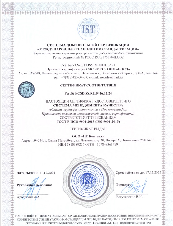 Система менеджмента качества ООО «НеоТех» сертифицирована на соответствие требованиям стандартов ГОСТ Р ИСО 9001-2015 и ГОСТ РВ 0015-002-2012.